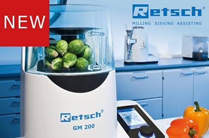 Le broyeur standard GM 200 pour l'homogénéisation des échantillons dans l'industrie alimentaire a été entièrement repensé et encore amélioré.