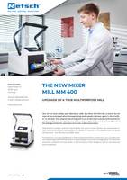 With the Mixer Mill MM 400 RETSCH has developed a true multipurpose mill which covers a huge range of applications, including classic mixing and homogenization but also more complex tasks like cell disruption via bead beating or mechanochemical processes. The ease of use of mixer mills in general, combined with a wealth of accessories make the MM 400 the perfect choice for quick, safe and reproducible processing of small sample volumes.
