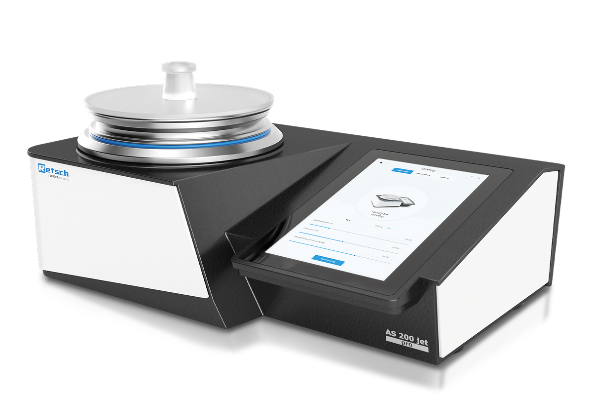 En revanche, l'AS 200 jet est une machine de tamisage à jet d'air conçue pour la dispersion et la désagglomération efficaces de poudres fines. Ce modèle est particulièrement adapté aux produits pharmaceutiques qui nécessitent une distribution granulométrique précise. Contrairement à la méthode de tamisage vibratoire utilisée par l'AS 200 control, l'AS 200 jet utilise un jet d'air rotatif qui disperse et désagglomère les poudres fines de manière plus efficace. Ce jet d'air crée un vide qui tire les particules à travers le tamis, garantissant que même les particules les plus fines sont séparées efficacement. Ainsi, l'échantillon peut être "plus fin" lorsqu'il est analysé avec la tamiseuse à jet d'air. C'est ce que l'on observe par exemple avec un échantillon de poudre fine. Des tamis de test avec des mailles de 40, 75, 125 et 150 µm ont été utilisés. L'AS 200 control a fonctionné à une amplitude de 1,2 mm avec une fonction d'intervalle de 10 s, pendant 5 minutes. L'AS 200 jet a été utilisé en mode suisse avec une vitesse de 55 tours/minute et une pression négative de 30 mbar - la procédure totale a également nécessité 5 minutes de travail.