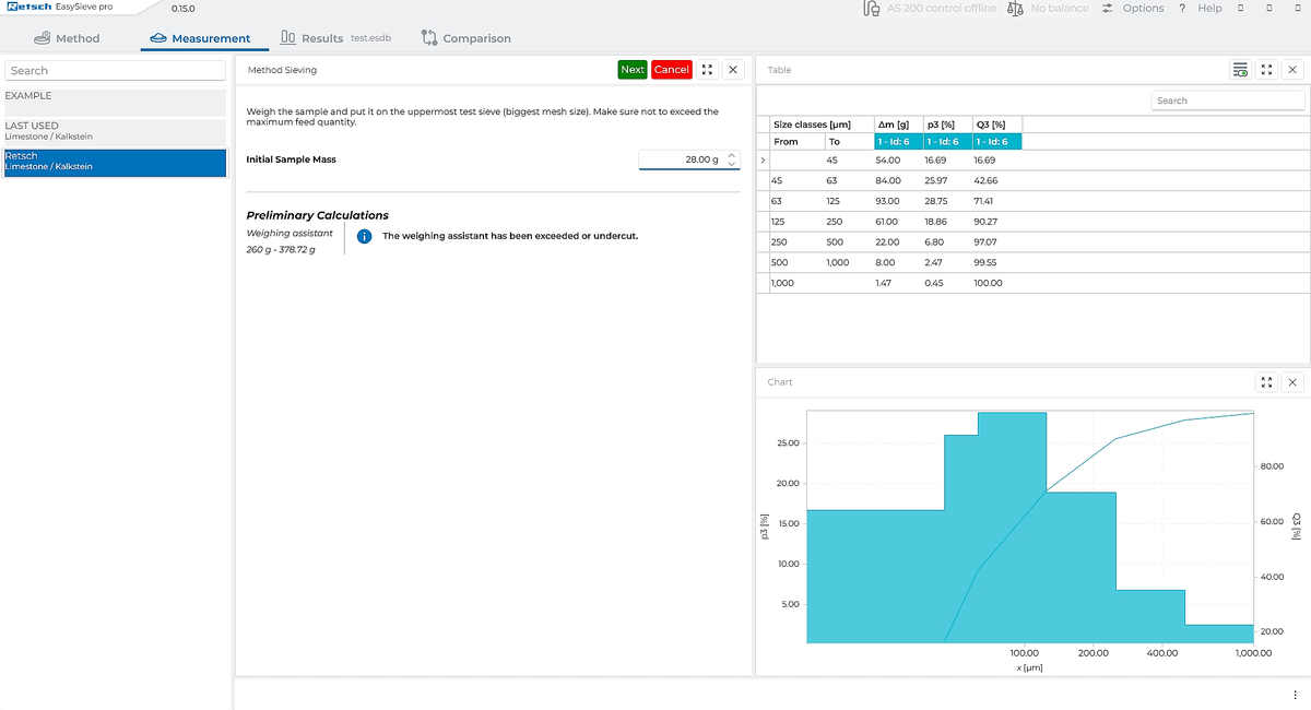 | Highest precision thanks to | Sieve-Check function, Weighing-Assistant and Weigh-in tolerance, Filter function for sieve rows, TrendAnalysis for sieves and methods, Backweighing-Tolerance |