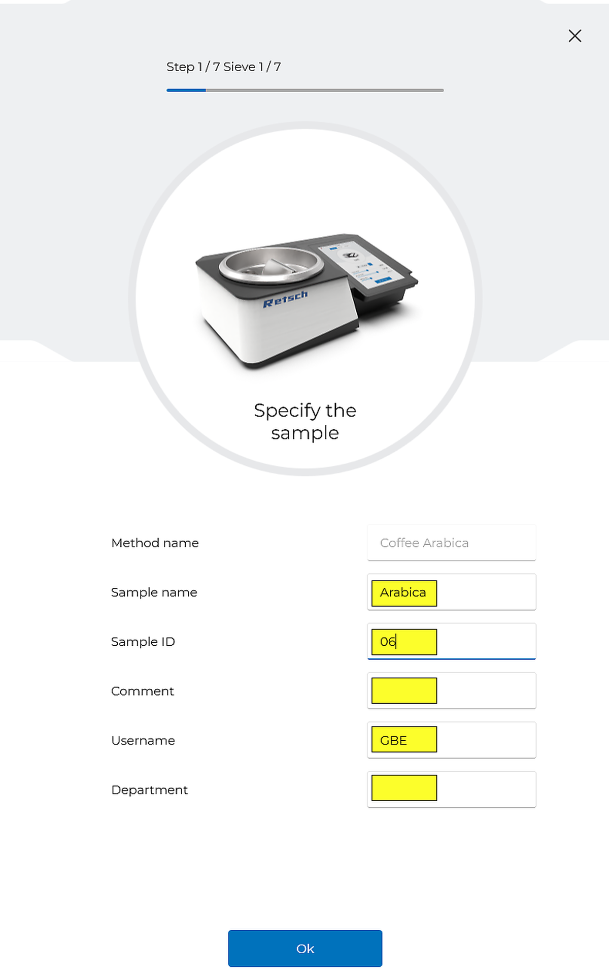 L'assistant interne guide l'utilisateur étape par étape tout au long du processus. Chaque étape est clairement expliquée et garantit des processus de tamisage fiables. Les erreurs humaines sont réduites au minimum. L'« assistant de pesée » en option recommande une quantité d'échantillon appropriée qui évite les erreurs liées à une surcharge du tamis tout en conservant une quantité minimale pour une analyse fiable, en tenant compte de la représentativité de l'échantillon. L'« assistant de pesée » peut être utilisé exclusivement avec les tamis de test RETSCH et peut être facilement activé/désactivé dans la méthode.